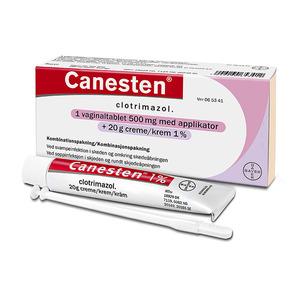 Canesten kombipakning – 1 dagsbehandling mod svampCanesten kombipakke indeholder en engangs vaginal tablet (stikpille) og 20 g creme, hvormed du kan behandle både indvendig og udvendig svampeinfektion.Cremen i kombipakningen smøres på den irriterede hud o (Læs mere)