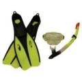 Snorkelsæt i en frisk grøn farve med svømmefødder, snorkel og dykkermaske. _x000D__x000D_Dykkermasken kan justeres i størrelsen. Snorklen har et tætsluttende silikone mundstykke, som sikrer, at vandet bliver holdt ude._x000D__x000D_Svømmefødderne er i str. 42-44. _x000D__x000D_Sættet lever (Læs mere)